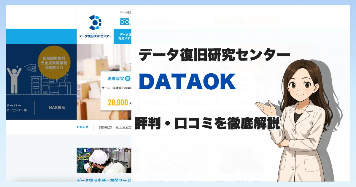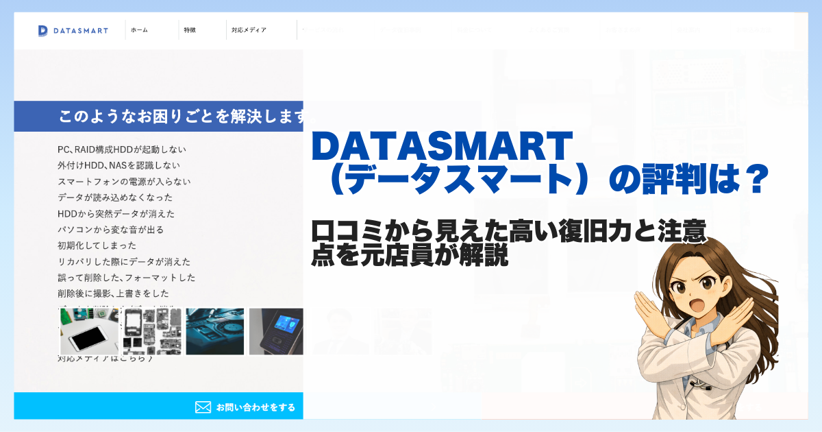 - 技術力の深さ:HDD物理故障〜RAID/NAS/SSDまで横断対応。スクラッチやFW異常にも踏み込めるか。